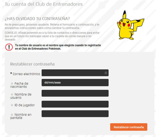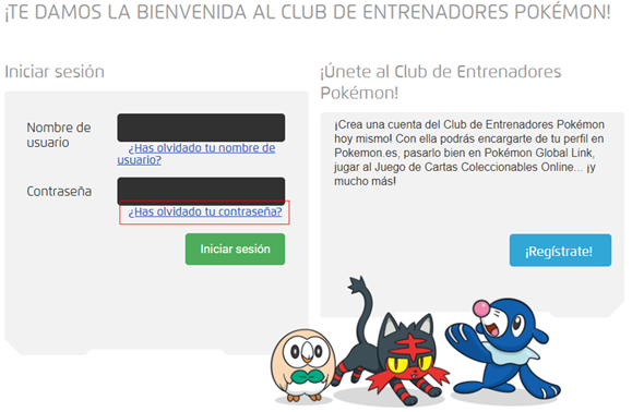 Desde la página de inicio de sesión del Club de Entrenadores Pokémon, selecciona la opción ¿Has olvidado tu contraseña?.