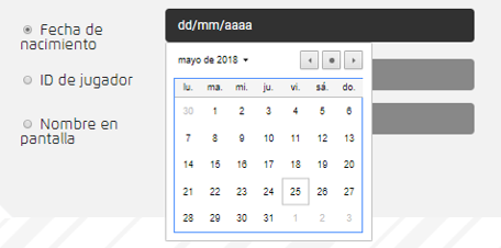 Esta debería ser la opción más sencilla para restablecer tu contraseña, especialmente si no recuerdas el resto de información de tu cuenta. Para introducir tu fecha de nacimiento, selecciona la fecha en el calendario. Nota: No podemos recuperar cuentas para las que se ha usado una fecha de nacimiento falsa.