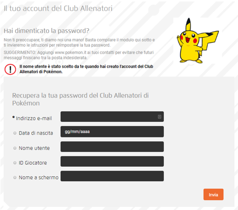 Assicurati di controllare anche nella tua cartella di posta indesiderata, come anche di aver aggiunto www.pokemon.com alla tua rubrica.